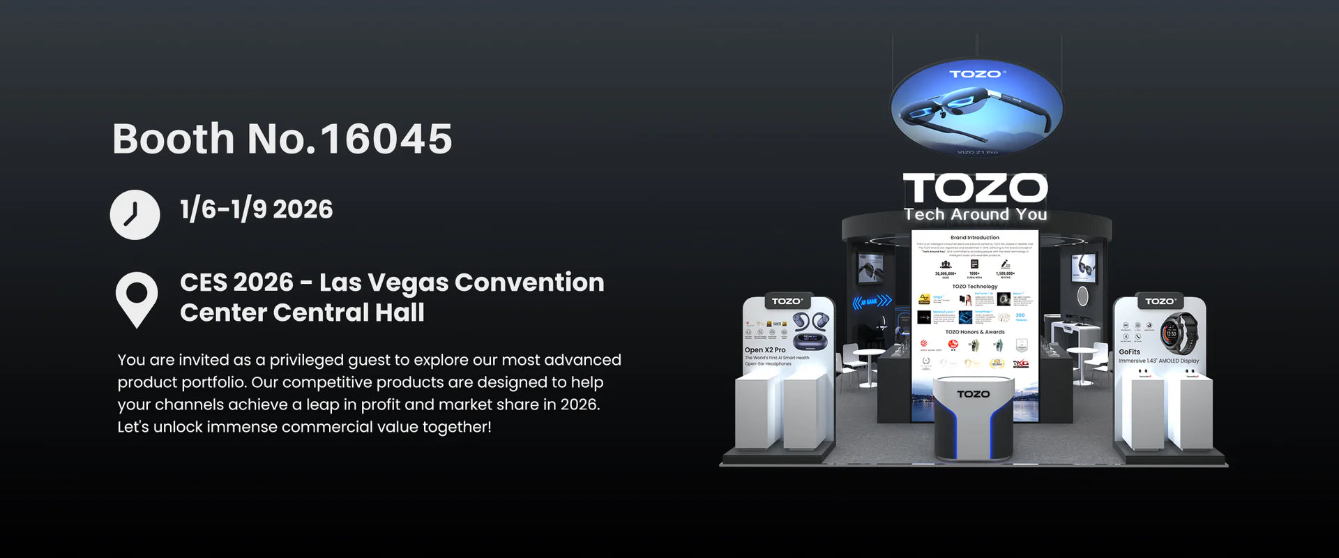 Can't make it to Las Vegas? Join us virtually! Follow our live social feed for real-time booth updates, product demos, and behind-the-scenes moments from the TOZO tech team.